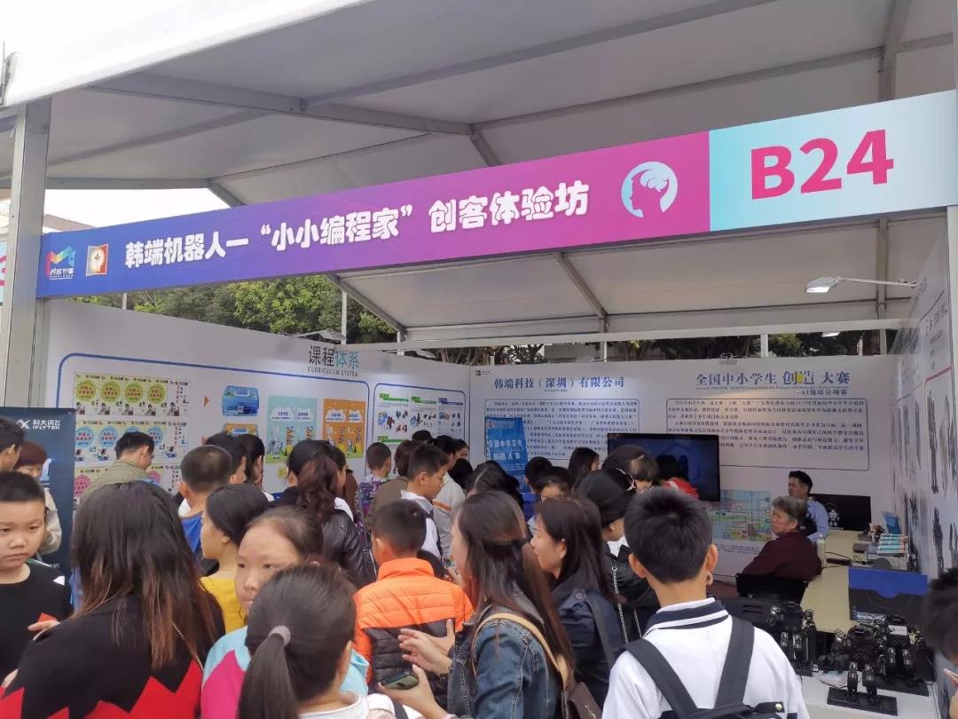 深圳學(xué)生創(chuàng)客節(jié)隆重開幕,韓端機(jī)器人創(chuàng)客體驗(yàn)坊吸引了上萬名奇思妙想的中小學(xué)生!