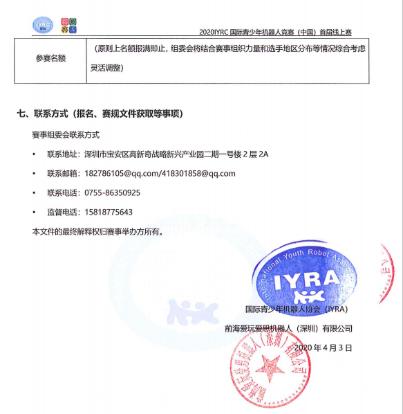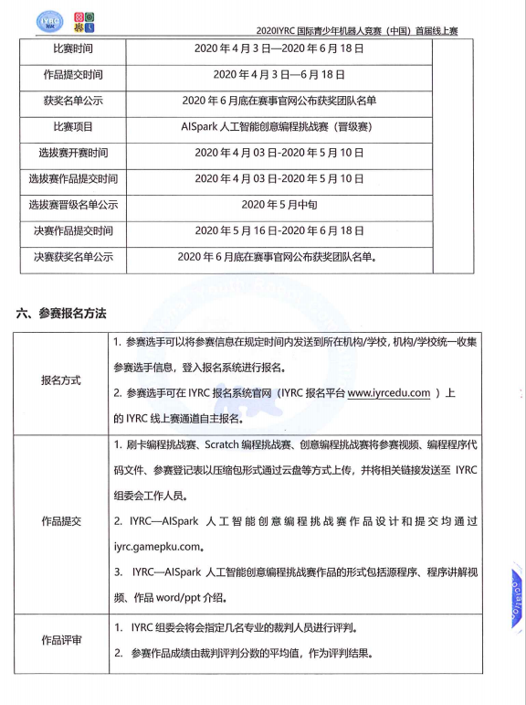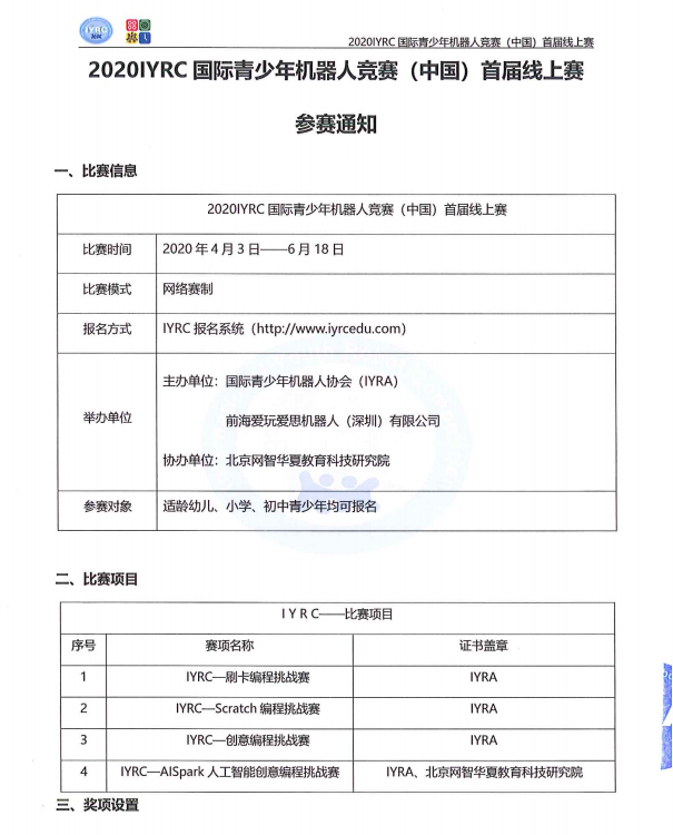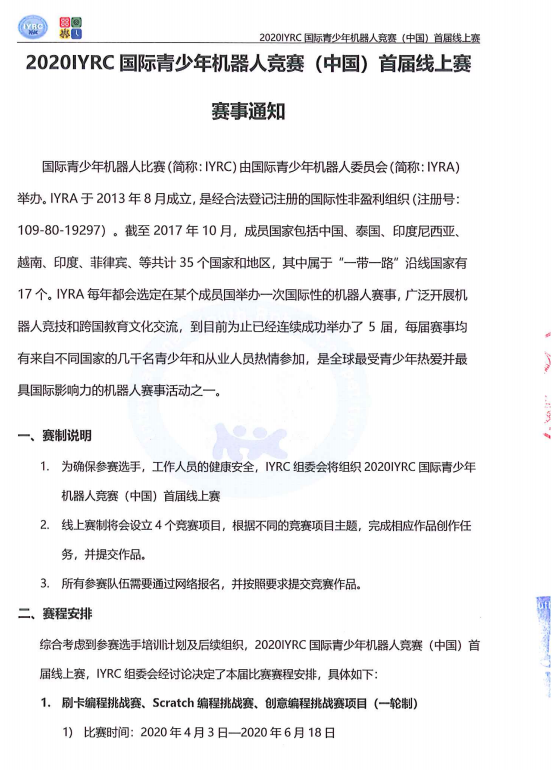 2020年IYRC國際青少年機器人競賽(中國)首屆線上賽
