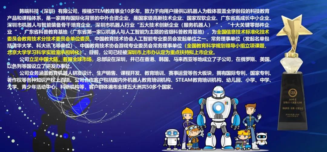 機(jī)器人產(chǎn)業(yè)已逐步挑起中國(guó)實(shí)體經(jīng)濟(jì)發(fā)展的大梁,一路走來(lái)縱然艱辛。隨著國(guó)家政策的開放,對(duì)推動(dòng)機(jī)器人與人工智能科技創(chuàng)新,技術(shù)成果轉(zhuǎn)化的企業(yè)帶來(lái)了信心。韓端機(jī)器人作為教育機(jī)器人行業(yè),肩負(fù)著時(shí)代的使命和擔(dān)當(dāng),本著兢兢業(yè)業(yè),愛崗敬業(yè)精神,努力學(xué)習(xí)貫徹新時(shí)代新發(fā)展理念,讓機(jī)器人與人工智能科技教育產(chǎn)品完美結(jié)合,立足中國(guó),放眼世界。