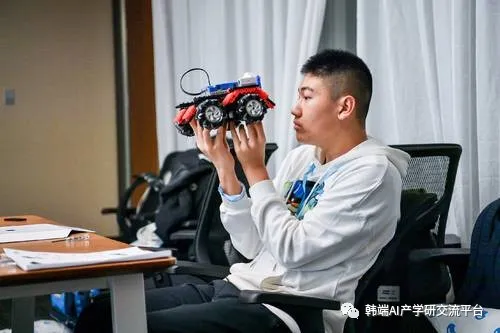 韓端騰訊優(yōu)圖UI無(wú)人駕駛智能車科學(xué)夏令營(yíng)以“優(yōu)I無(wú)人駕駛智能小車”為教具。