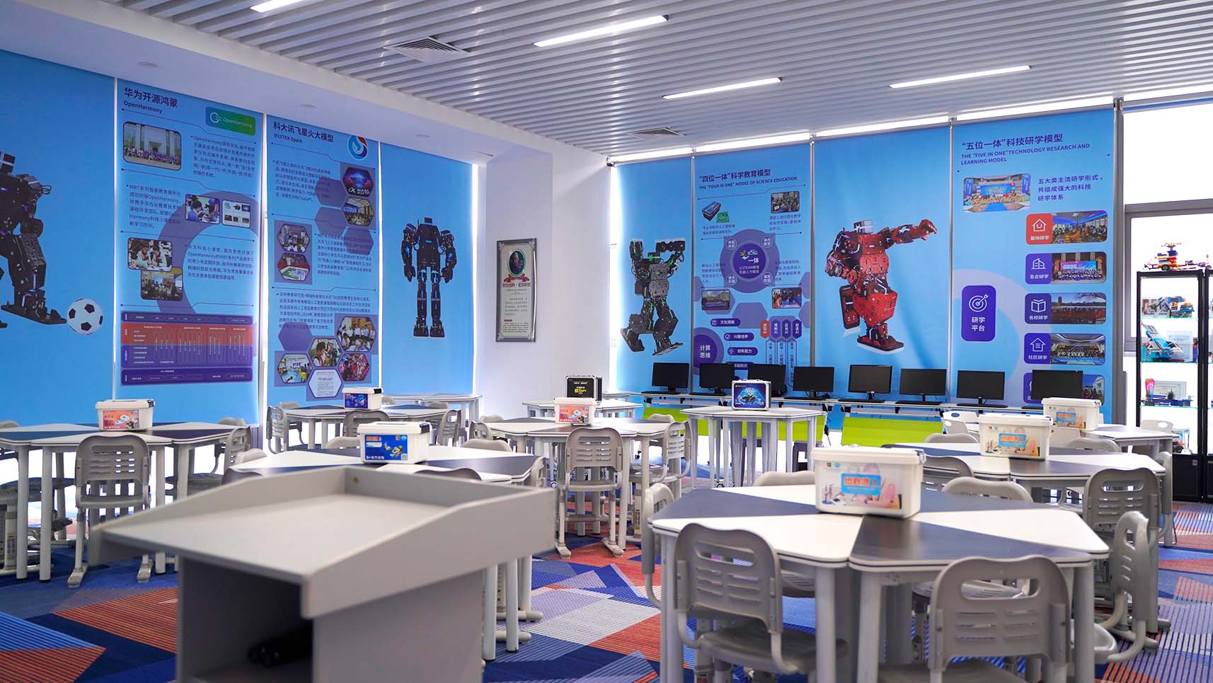 “這些機器人運用了來自華為和科大訊飛的人工智能技術,能夠完成舞蹈、踢足球、格斗等項目,在接下來的第二課堂中,這些機器人,未來將成為龍城中小學生們在“第二課堂中”的“學習伙伴”。