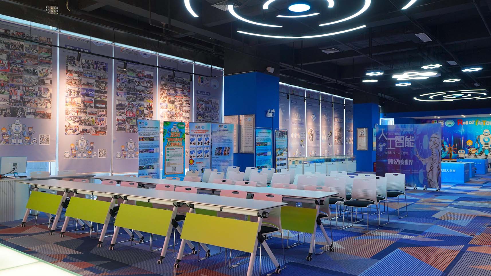 在活動現(xiàn)場,龍城街道轄區(qū)基地——韓端人工智能產學研基地展示了其在科學素質教育領域的一系列人工智能編程教育硬件產品。