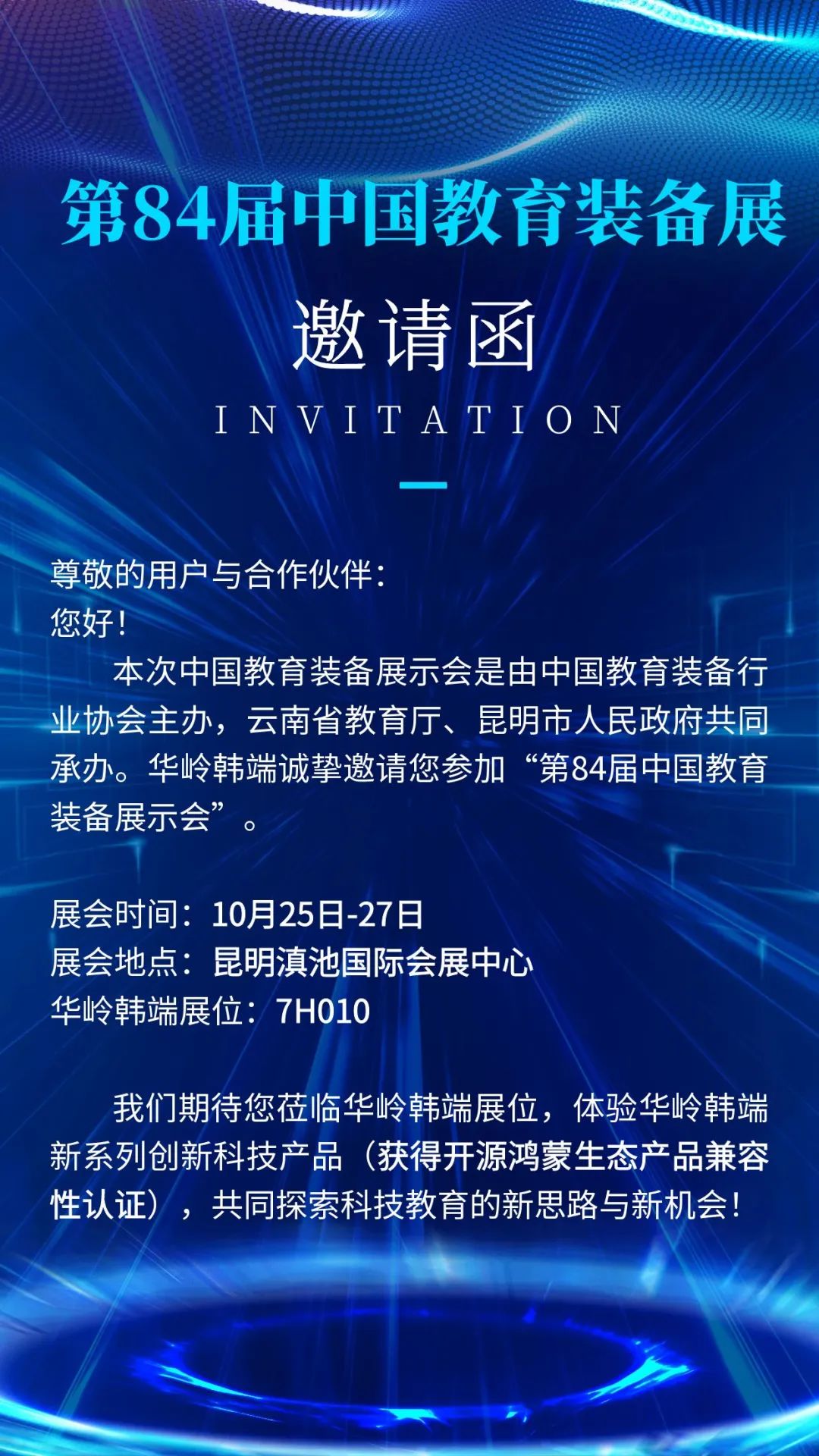 邀請(qǐng)函 | 第 84 屆中國(guó)教育裝備展啟幕,華嶺韓端誠(chéng)邀您相聚昆明!