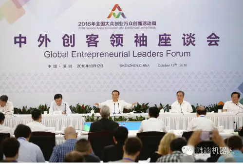 中外創(chuàng)客領(lǐng)袖座談會是今年雙創(chuàng)周的重頭戲。李克強總理親自出席座談會并作重要講話。蘋果公司CEO 蒂姆•庫克、德國iF設計大獎組委會主席拉夫•威格曼、騰訊公司創(chuàng)始人馬化騰、阿里巴巴董事局執(zhí)行主席馬云、深圳市大疆創(chuàng)新科技有限公司創(chuàng)始人汪滔作主旨發(fā)言,暢談創(chuàng)神。