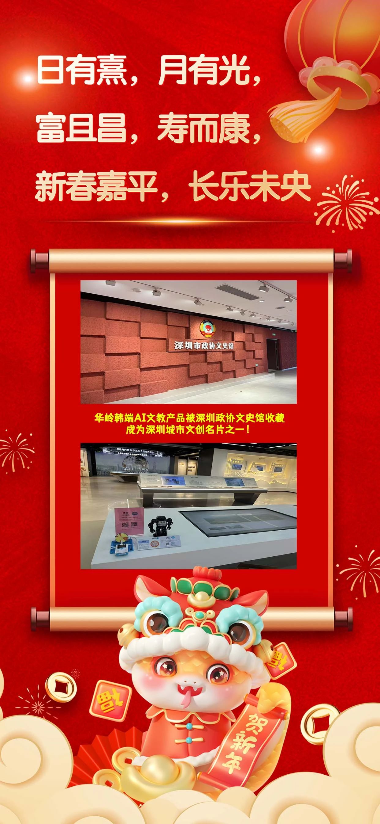 恭祝蛇年新春嘉平,長(zhǎng)樂未央 | 華嶺韓端AI科創(chuàng)文教產(chǎn)品被深圳政協(xié)文史館收藏