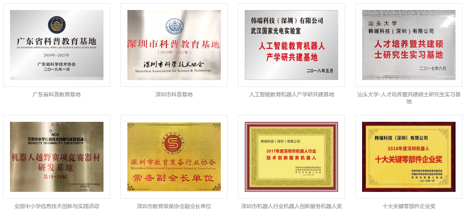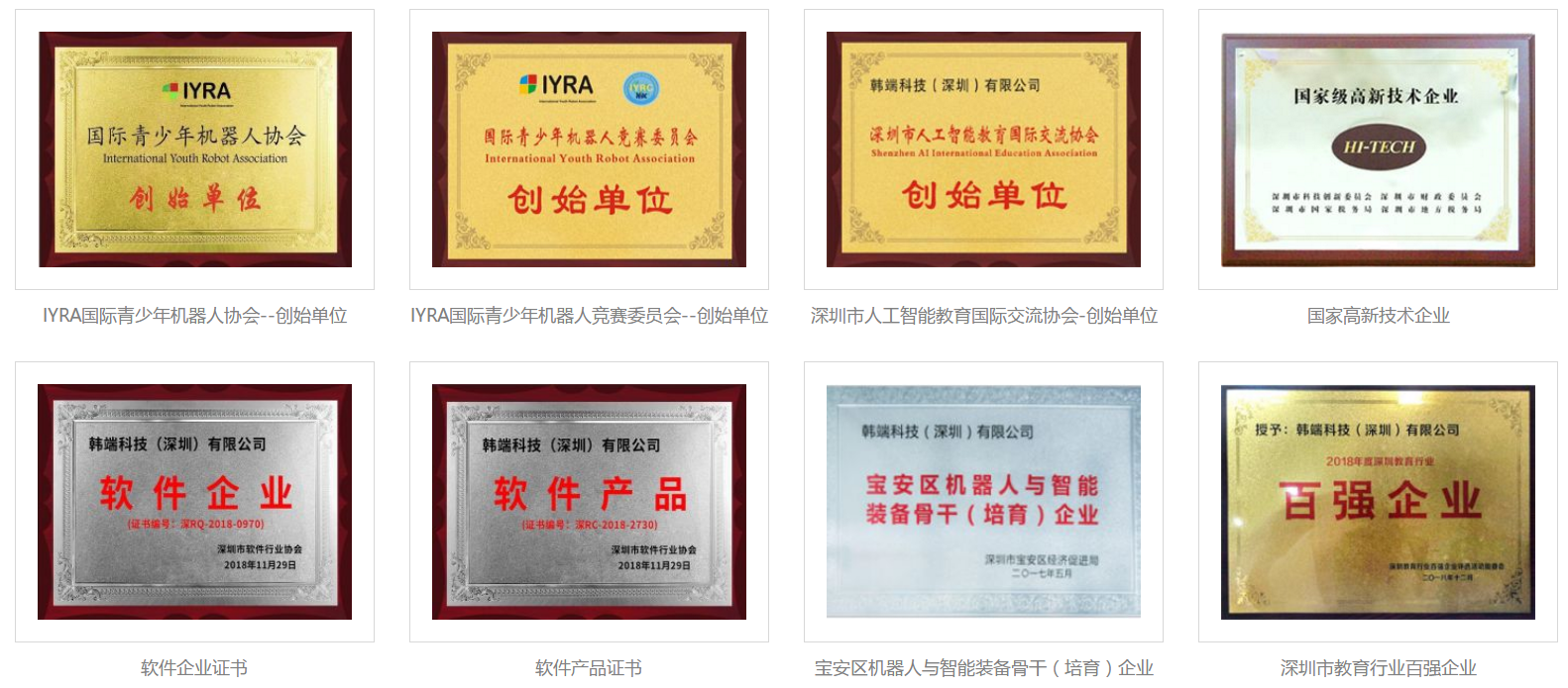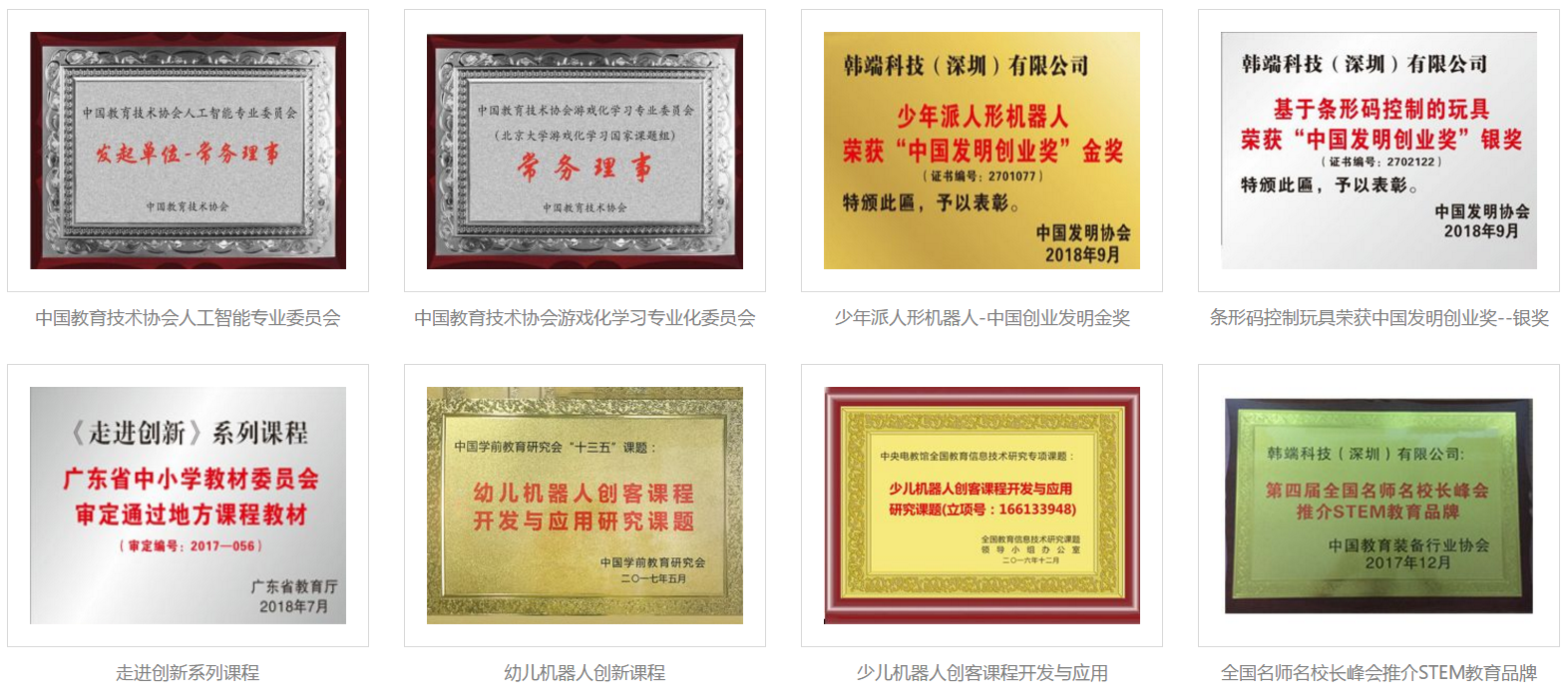 韓端機器人根植機器人編程與人工智能教育事業(yè)10余年,致力于向用戶提供以機器人為載體覆蓋全年齡段的科技教育產品和課程體系,是一家擁有國際化背景的中外合資企業(yè),是國家級高新技術企業(yè)、國家雙軟企業(yè)、深圳市機器人與智能裝備骨干培育企業(yè)、深圳市機器人行業(yè)“五大技術創(chuàng)新企業(yè)(服務機器人)”、“十大關鍵零部件企業(yè)”、廣東省科普教育基地(廣東省第一家以機器人與人工智能命名的省級科普教育基地),為國際青少年機器人協(xié)會創(chuàng)始單位,中國教育技術協(xié)會人工智能專業(yè)委員會發(fā)起單位之一、常務理事單位,中國教育技術協(xié)會游戲化學習專業(yè)委員會(北京大學游戲化學習國家課題組)常務理事單位,深圳市教育裝備行業(yè)協(xié)會發(fā)起單位、常務副會長單位。公司已經(jīng)被深圳市上市辦認定為重點扶持擬上市企業(yè)。